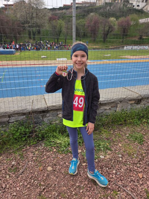 Olyan természetességgel mozog a pályán, hogy öröm nézni. Versenyeken indul, nála majdnem két évvel idősebb gyerekek között, és nem hogy lemarad — simán ott van az elsők között a futásban.